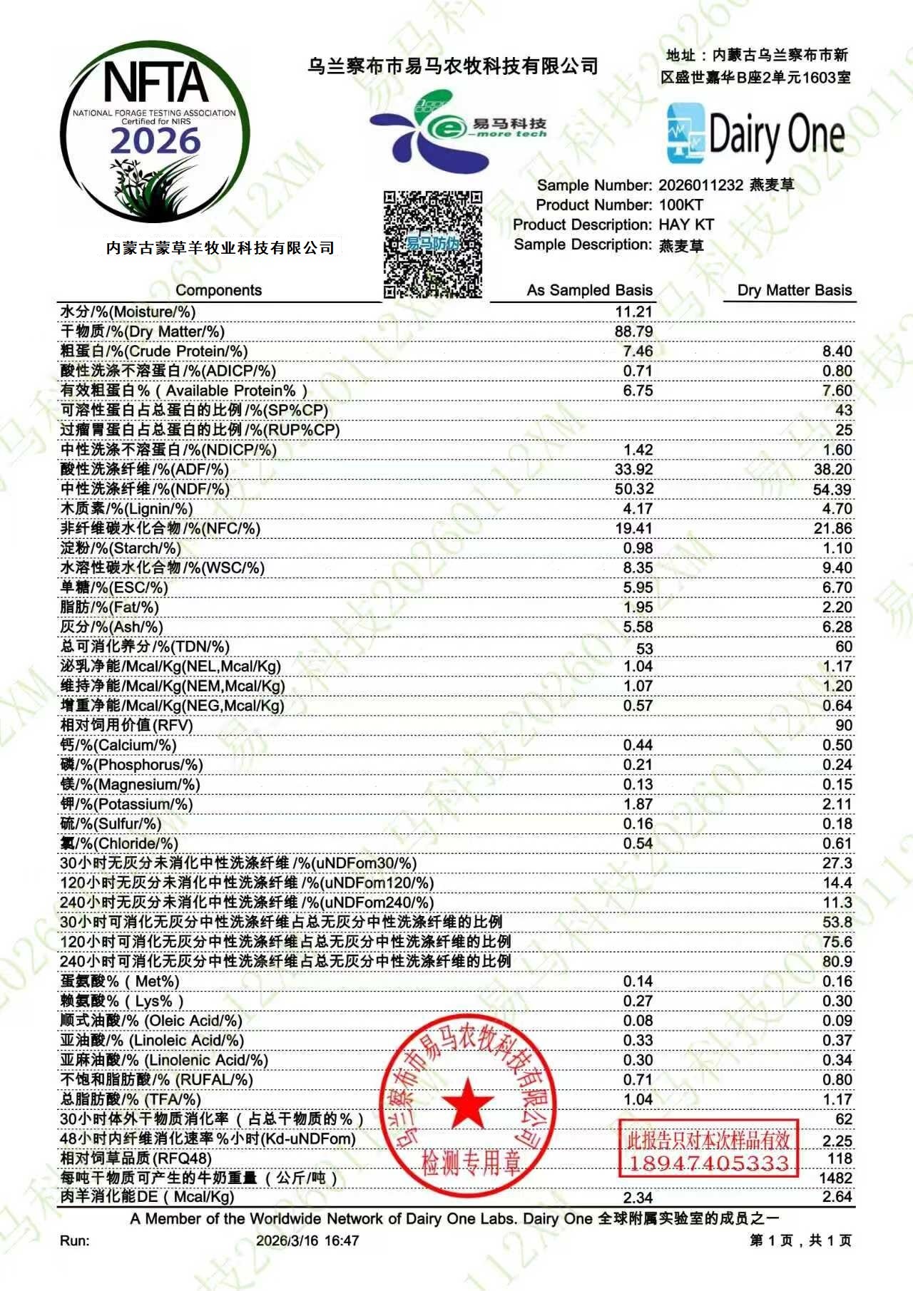 • 酸性洗涤纤维: 46%